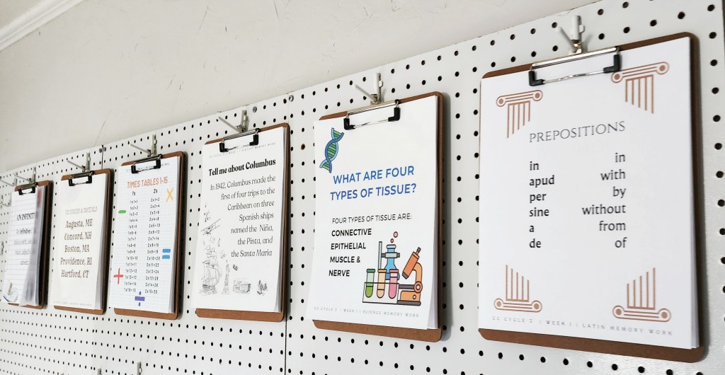 Families do their memory work in different ways. These printables and clipboards (no shame; I got them each at dollar tree) make it easy for our family to learn what we need.